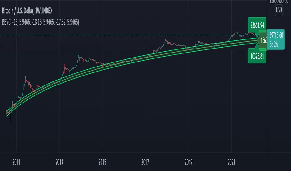 Here is my interpretation of the "Best Time To Buy" Bitcoin over its lifetime using a logarithmic regression trendline. The upper and lower lines are 10% deviations from the centre line. I calculated the trendline in excel and then coded my results into pine script.