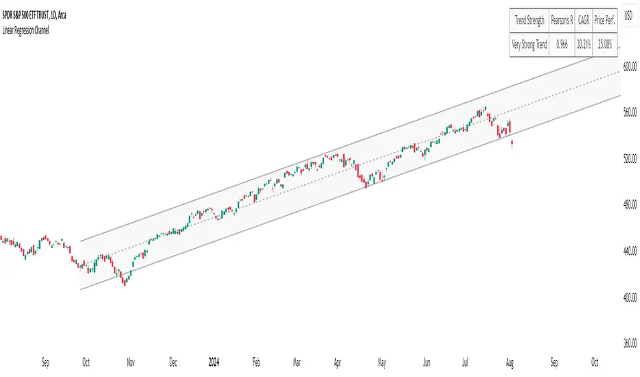In summary, this Linear Regression Channel indicator combines flexibility, precision, and insightful analytics, making it an invaluable tool for traders seeking to enhance their technical analysis capabilities on TradingView.