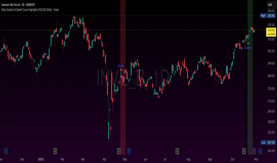 Goldencross & Deathcross Highlights (50/200 SMA) - Fixed daily
