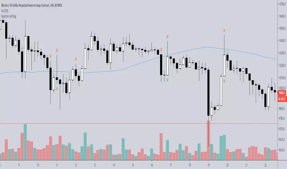 - All green and red crosses should appear on the same candles. These crosses are calculated by identical code.