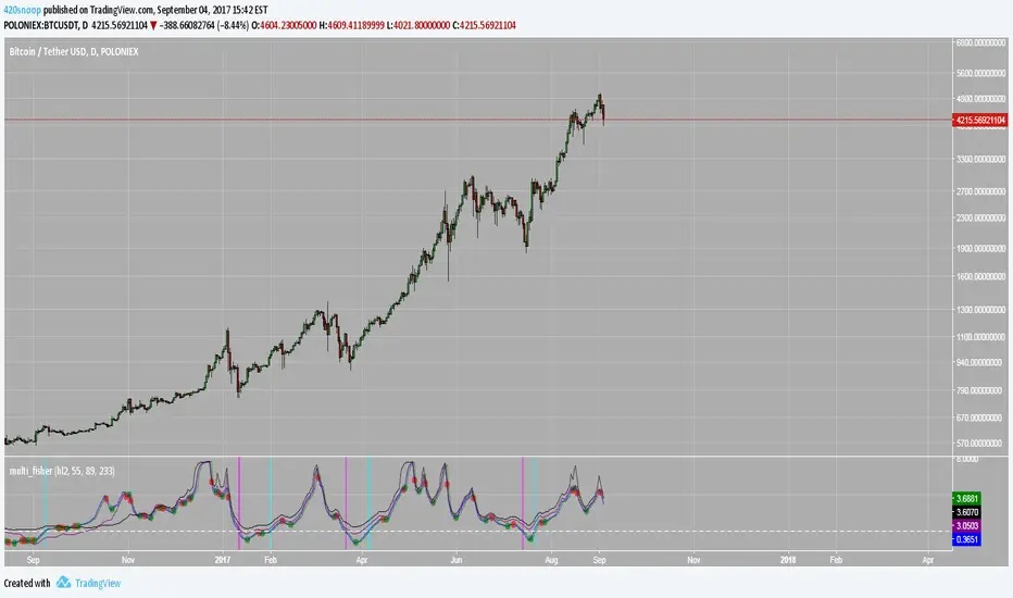 Based on 3 Fisher transforms -- this script look for confluence on crosses of 0