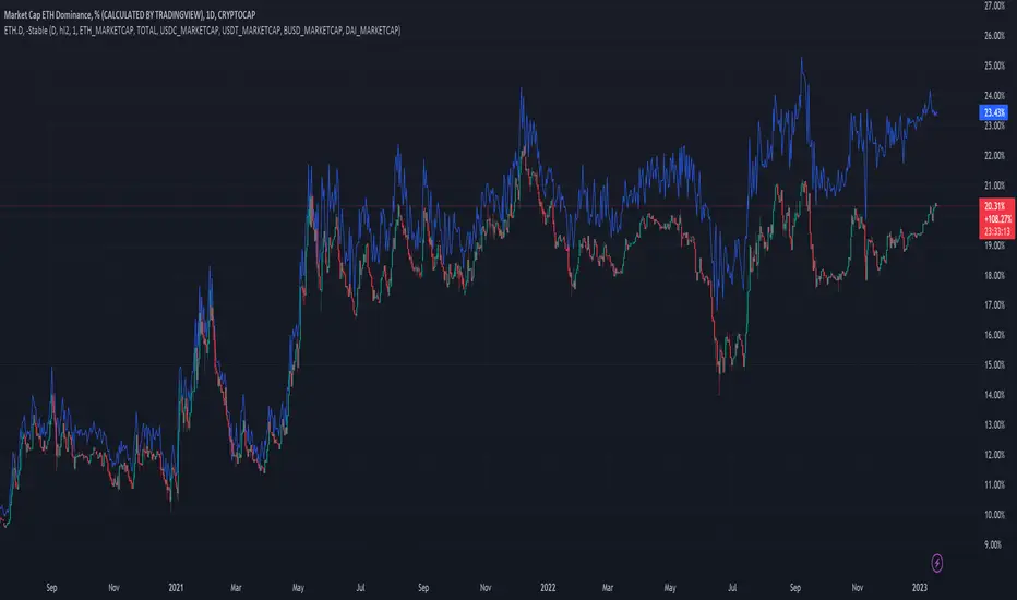 Pretty much shows ETH Dominance in comparison to Market Cap once we exclude the 5 largest stablecoins.