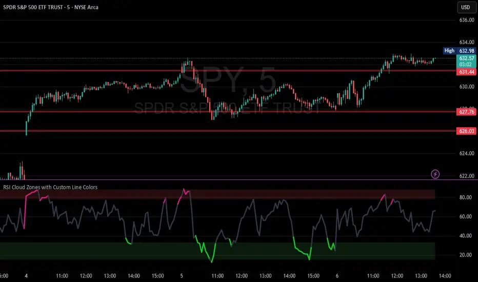 RSI instruction: Uptrend market only. LONG only. Should use only when SPY and QQQ are above 50 SMA and 200 SMA, and the 50sma is above 200sma, and RSI(14) is above 50 ............... BUY only in the GREEN area. Do NOT buy above GREEN green area. That would be chase (after a train, a ship that left). Take profit in the RED area, preferably on a green candle. This does not encourage SHORT-ing. LONG only. Disclaimer: This is an entertainment. If you lose money, don't blame this indicator or the creator. You have to pay attention to whether the market is on uptrend.