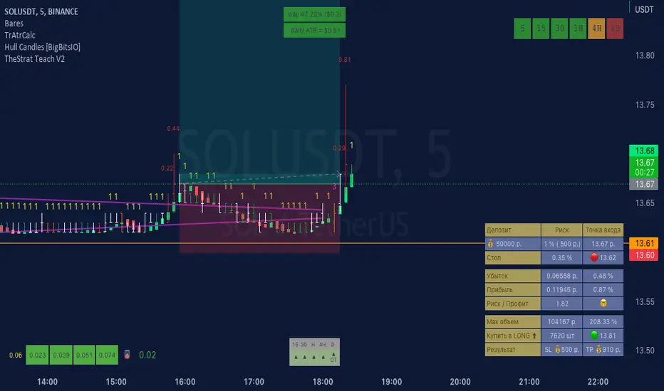 - прогресс ATR каждой новой свечи, на текущем тайм-фрейме