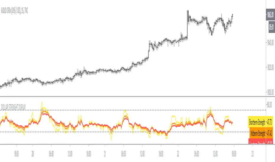 Dieses Skript zeigt die aktuelle Währungsstärke des US- Dollars. Der Indikator enthält drei verschiedene Zeitzonen: