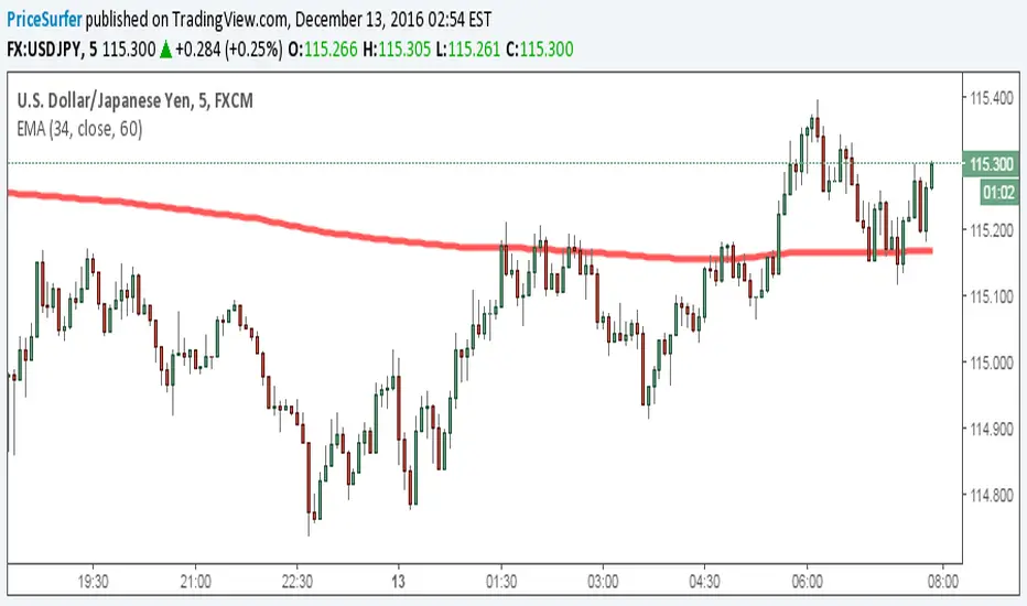 This EMA allows you to specify a time-frame for the price used to calculate the moving average. For example, you can create 1 hour EMAs on your 5 minute chart.