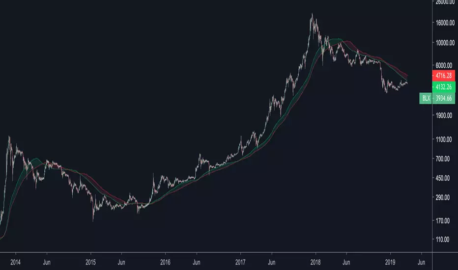 This a variation to my 120/60 Trend Model for the daily chart on Bitcoin, which has quite reliably been determining the over all trend as well as low risk entries within a longer term trend. It's a combination of 150 & 220 SMA, used on the 1D chart. Once price closes below both SMAs trend is an early bearish signal, while the SMAs flipping to red is later but more reliable bearish signal. For bullish trend it is the same thing just the opposite. Once the "cloud" switches red trend is bearish while once it switches green it's bullish.