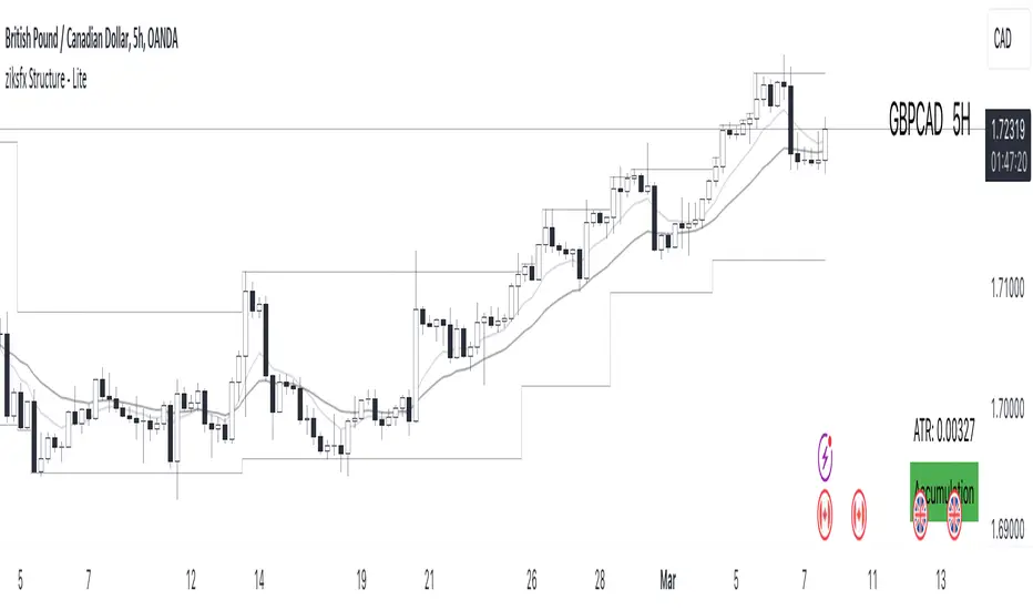 - Market Stage Visualization: By seamlessly integrating with the structure tracking, my indicator presents the current 'Market Stage,' offering a clear stage of the current market's phase, which is crucial for informed trading decisions. The core methodology for determining market stages is derived from the foundational concepts established by mentfx.