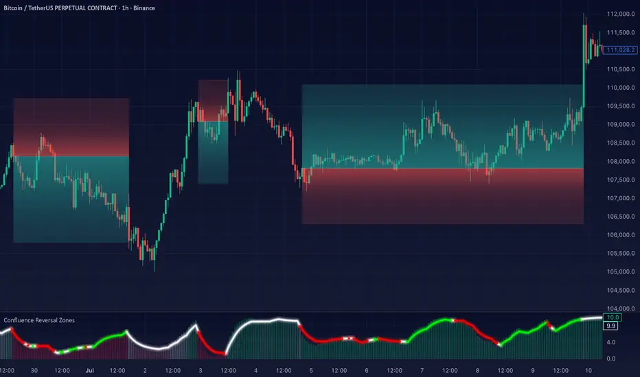 Display Mode: Hybrid - Indicator pane for confluence line + Zone overlays on price chart