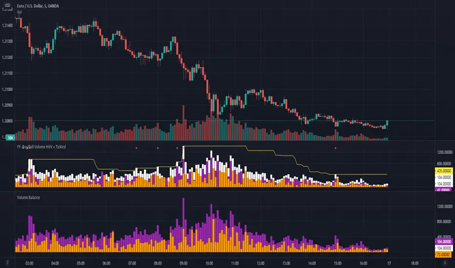 The indicator colors the volume bars in two colors to display the Bullish and Bearish power.