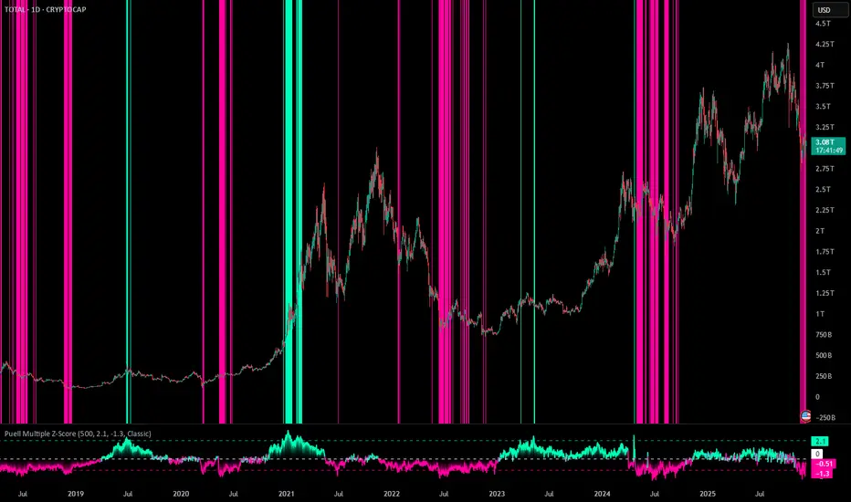 This indicator is designed for traders who focus on identifying cycle extremes and potential mean reversion opportunities. By using Z-score analysis, this tool can be particularly effective for detecting points of overextension in the market, where a reversion to the mean is likely.