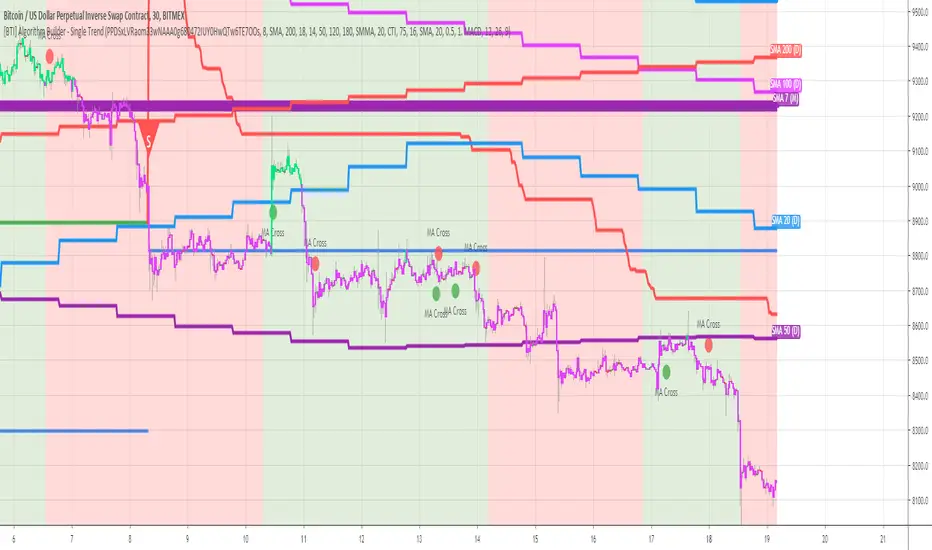 The Algorithm Builder - Single Trend was made to detect the convergence (also called confluence) of many unrelated indicators, giving a BUY or SELL signal whenever all the selected sub-indicators are converging in the same direction.