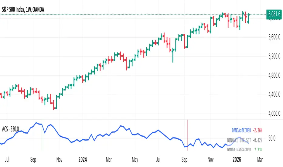 For OANDA:XAUUSD, OANDA:XAGUSD, OANDA:BCOUSD and tickers that are not listed (e.g. OANDA:NATGASUSD, COMEX:GC1!), the comparison symbol will be TVC:DXY. For OANDA:XAUUSD and OANDA:XAGUSD, the price change from the previous bar will also be displayed for OANDA:SPX500USD. For OANDA:SPX500USD, the comparison symbol will be OANDA:BCOUSD, and the price change will also be displayed for BINANCE:BTCUSDT and OANDA:NATGASUSD. For BINANCE:BTCUSDT, the comparison symbol will be OANDA:SPX500USD.