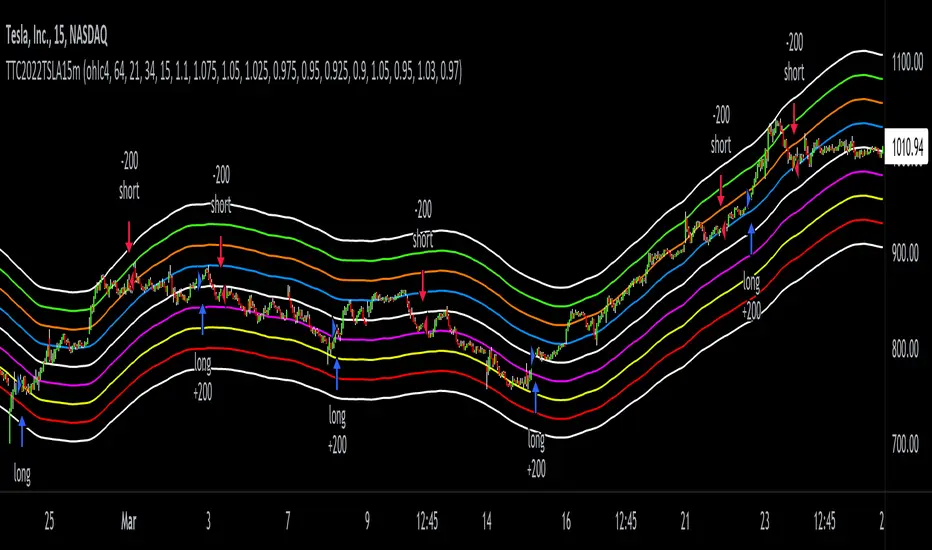 It's based on my TTC: Triangular Trend Channel script that dynamically creates a trend channel on the move. It uses open, high, low, close, simple moving average inputs for its plot lines and sma9 & ema5 for calculation purposes. The default trend channel line settings are based off sma64.
