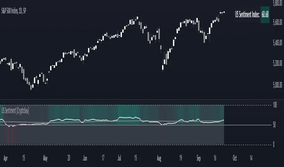 The US Sentiment Index by [CryptoSea] is an essential addition to the toolkit of any trader looking to navigate market complexities with precision and confidence. Its advanced features and data-driven approach offer unparalleled insights into market sentiment, setting it apart from conventional sentiment indicators.