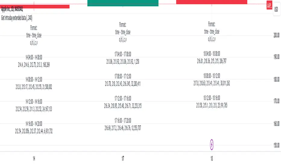 If you have interacted with Pine for some time, you probably noticed that if you are using DWM resolutions, you will not be able to obtain complete data from the extended intraday ticker using the usual functions request.security() and request.security_lower_tf(). This is quite logical if you understand the principle of mapping data from the secure context to the main one. The main reason is the different opening and closing times of the intraday data with extended clocks and DWM.