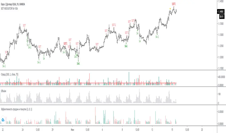 Индикатор в первую очередь написан для таймфреймов от одного часа. На таймфреймах менее 1 часа сигнал будет приводить к неверным результатам, поскольку вечерние объемы существенно ниже дневных.