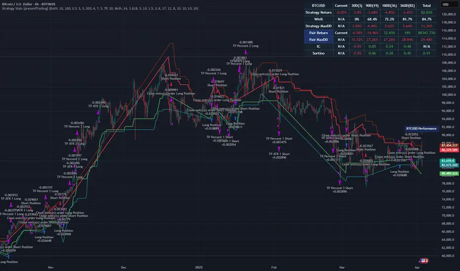 - Integrated risk management: Implements sophisticated take profit mechanisms with 3-step ATR and percentage-based exits