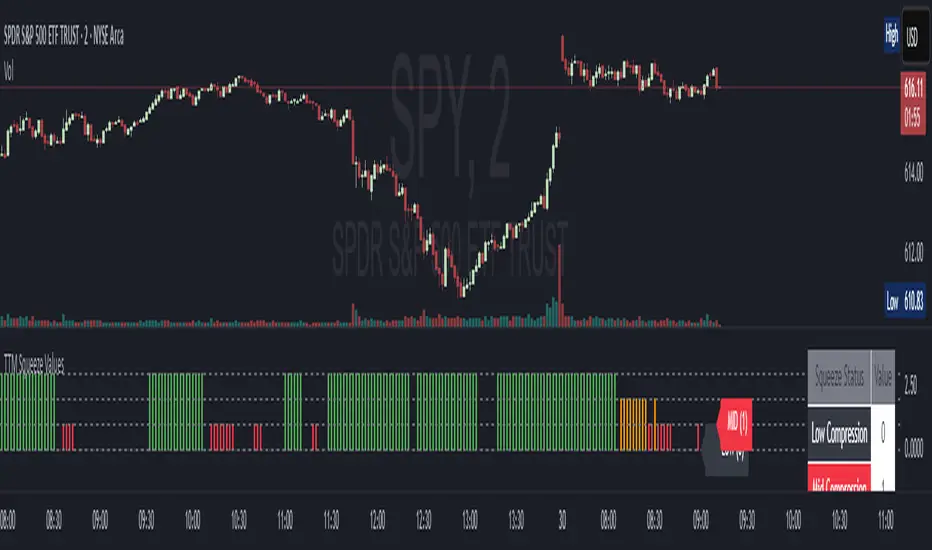 The TTM Squeeze Value Oscillator converts the popular TTM Squeeze indicator into a screenable format by outputting specific numerical values and binary signals (1 or 0) that can be filtered in TradingView's screener tool.