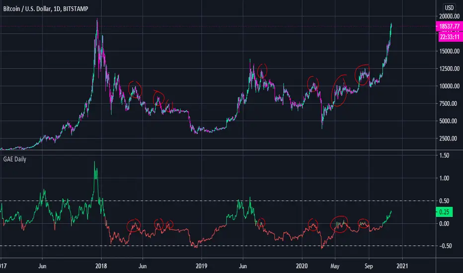 This indicator is ONLY useful on the daily time frame and ONLY on BTC.