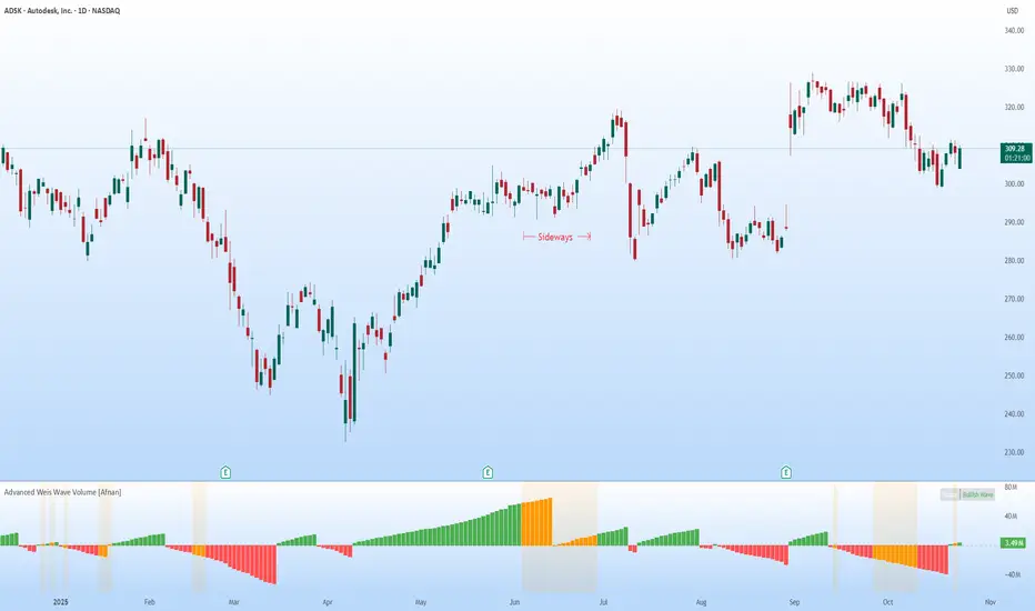 Advanced Weis Wave Volume is an enhanced upgrade of the classic Weis Wave concept. It measures accumulated volume within price swings to show where buying and selling pressure truly shift — but with one major edge: optional consolidation detection.