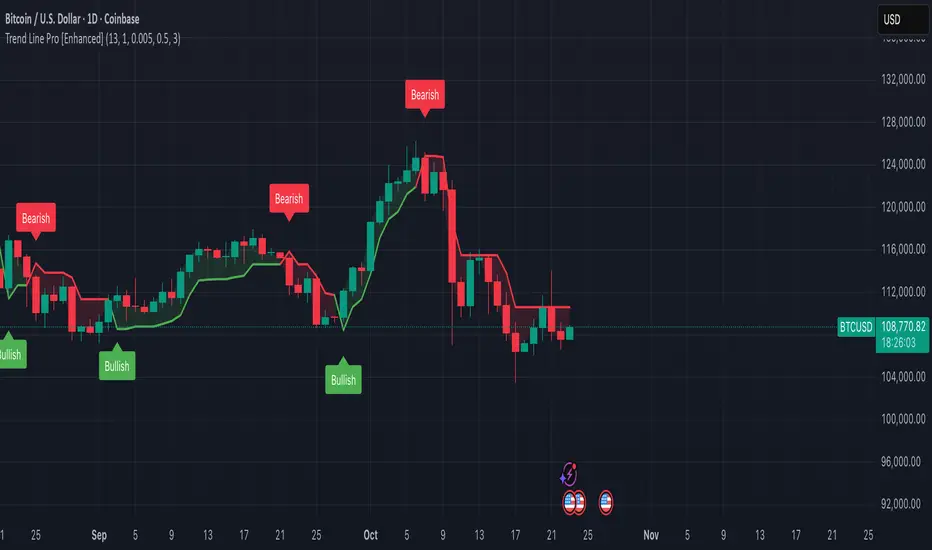 When momentum shifts, TrendLinePro instantly highlights the flip level and labels the new trend direction — helping traders stay aligned with the market’s true structure and avoid misleading noise.