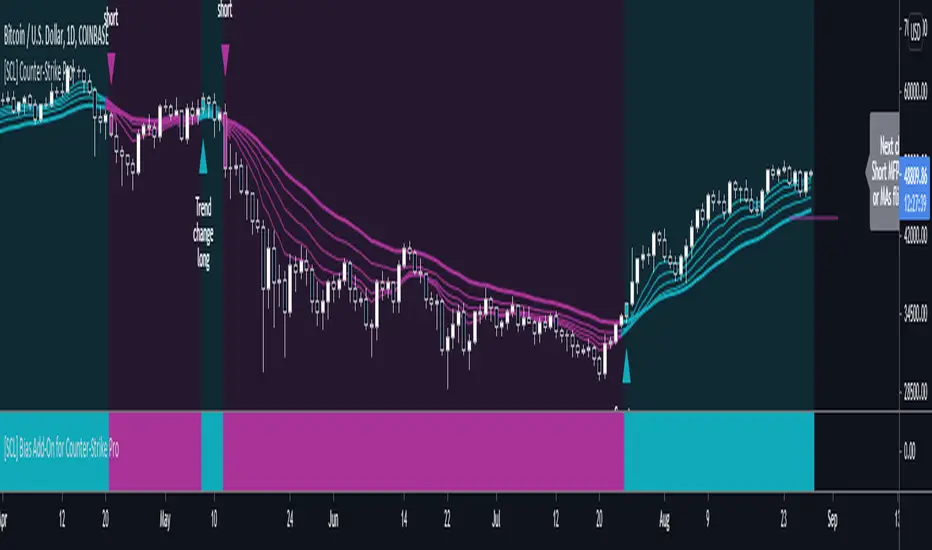 Counter-Strike Pro is a trend/counter-trend indicator. It combines Momentum Failure Patterns and Moving Average flow into one to give a continuous long/short bias. Momentum Failure Patterns are breaks of relevant market structure, where the structure that’s relevant is updated dynamically according to momentum alignment.