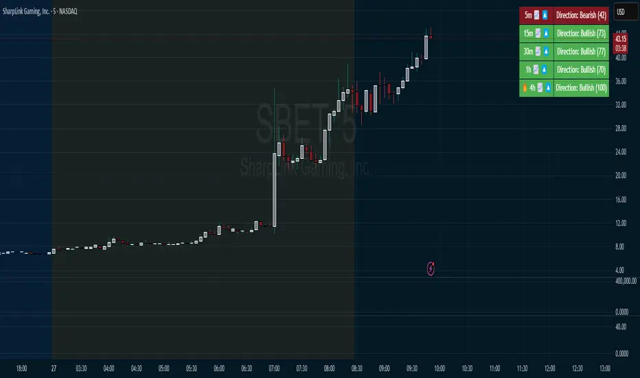 This script is a multi-timeframe (MTF) price action dashboard that helps traders assess real-time directional bias across five customizable timeframes — with a focus on candle behavior, trend alignment, and confidence strength.