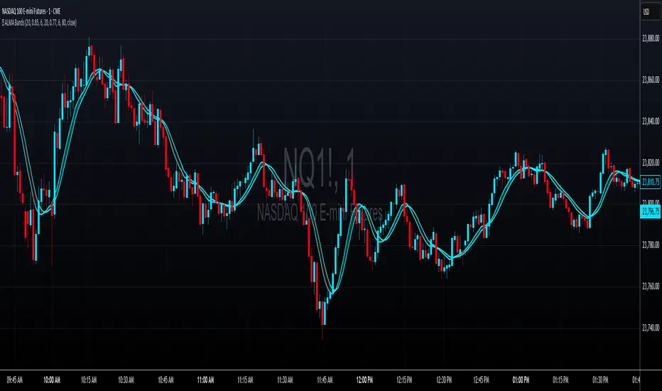 Simple implementation of ALMA (Arnaud Legoux Moving Average) bands from the Trend Architect Suite.