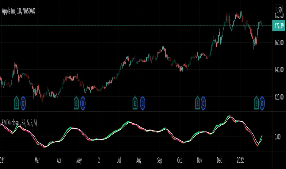The Ergodic Mean Deviation Indicator was created by William Blau and this is a hidden gem that takes the difference between the current price and it's exponential moving average and then double smooths the result to create this indicator. This double smoothing of course creates a lag that allows it to give off a sustained buy signal during a bullish trend and vice versa. This is a very fun indicator to experiment with and surprised that no one on here gives William Blau much attention so I will go ahead and publish the rest of his scripts eventually. I have included strong buy and sell signals in addition to normal ones so strong signals are darker in color and normal signals are lighter in color. Buy when the line turns green and sell when it turns red.
