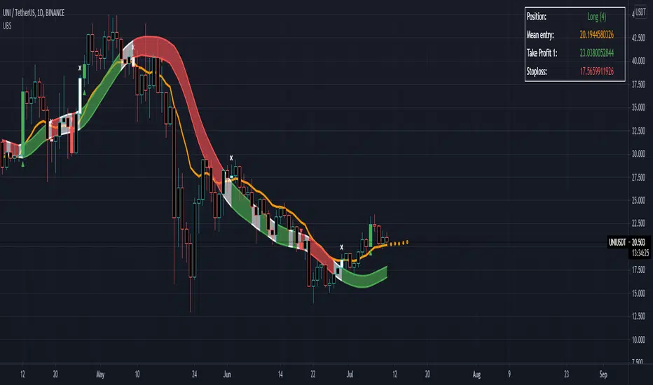 When a candle closes below both baselines after an active LONG signal or above both baselines after an active SHORT signal, closing the trade is recommended. These criteria serve as secondary exit indicators.
