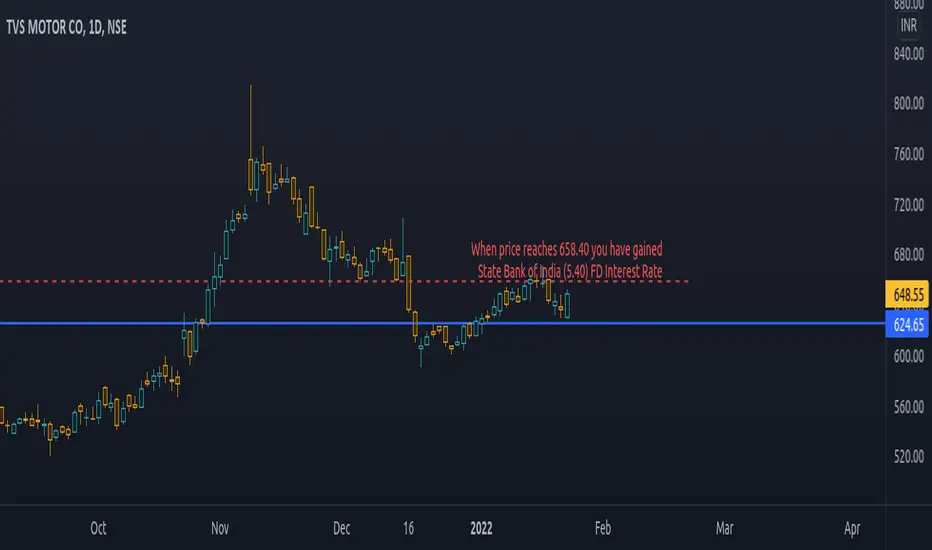 The chart shows that on TVS Motor, a trade taken at 624.65 would have to go up to 658.40 to give State Bank of India's FD interest rate of 5.40 p.a.