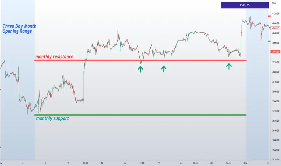 A trading range which is formed during the first three trading day of any month sets an important "Month Opening Range".