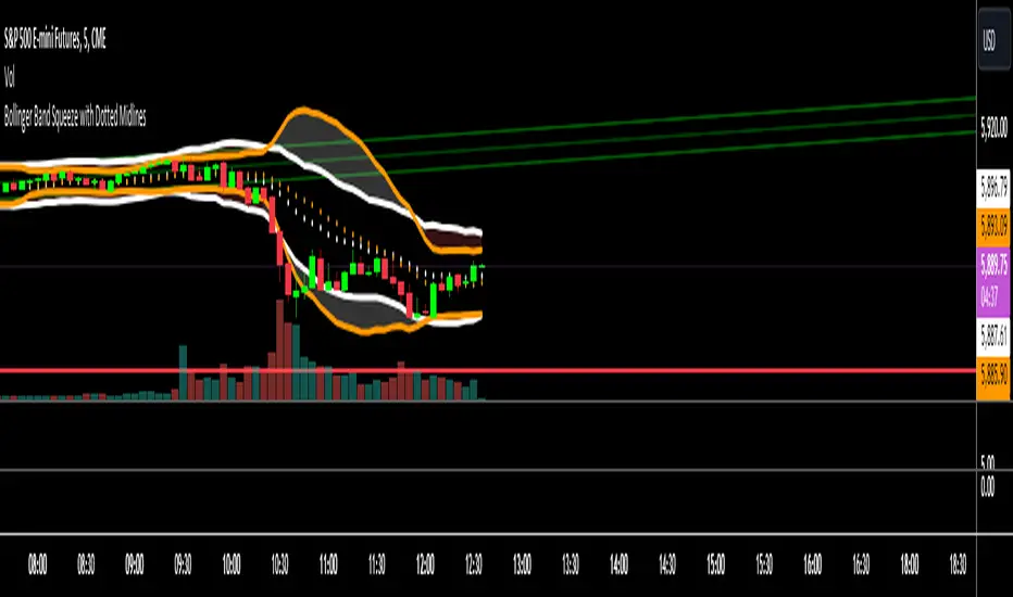 The Bollinger Band Squeeze with Dotted Midlines indicator is a powerful tool designed to identify periods of low volatility in the market, known as "squeeze" conditions, which often precede significant price movements. By combining Bollinger Bands and Keltner Channels, this indicator highlights when the market is consolidating and prepares traders for potential breakouts.