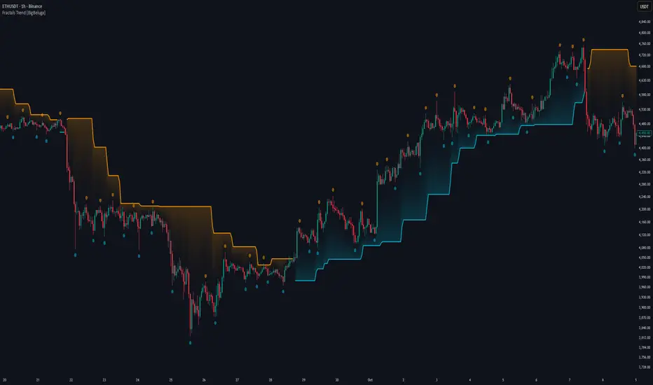 Fractals Trend [BigBeluga] offers a lightweight, intuitive way to track market bias using price structure alone. Its smart switching logic and clean visuals make it a powerful tool for trend traders seeking structure-based dynamic S/R—without laggy moving averages or overcomplicated signals.