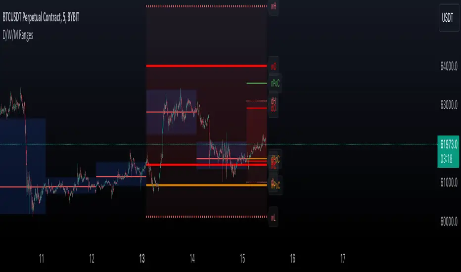 - Potential Support and Resistance: The indicator highlights previous day and week ranges that may serve as key support or resistance levels in subsequent trading sessions.