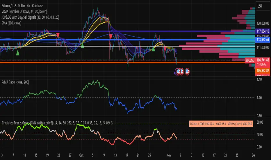 Because TradingView cannot directly access CNN’s or alternative external sentiment feeds, this indicator simulates the Fear & Greed Index by analyzing in-chart technical data that reflect investor psychology.