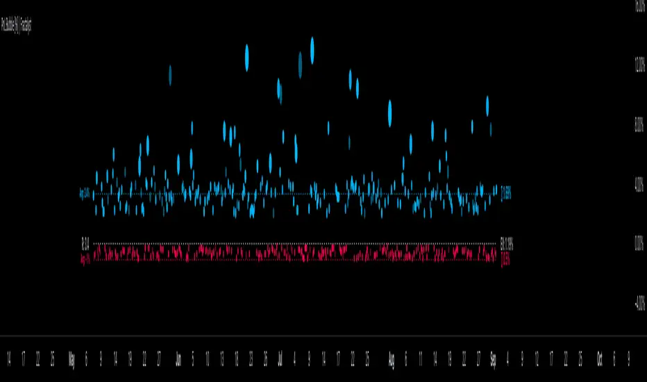 The PnL Bubble [%] indicator transforms your strategy's trade PnL percentages into an interactive bubble chart with professional-grade statistics and performance analytics. It helps traders quickly assess system profitability, understand win/loss distribution patterns, identify outliers, and make data-driven strategy improvements.