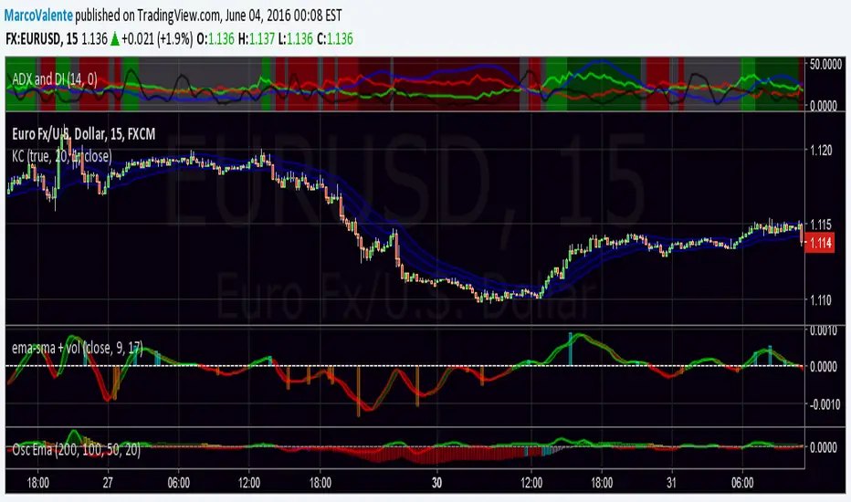 oscillator from the difference between Ema and Sma, moving around 0 line, Quite reactive if use the cross of the 2 lines , more conservative if wait the lines cross the zero line. I add columns for the big change of volume with the cut off so it s show only big divergence with the avarage. colors show trends. I think usefull