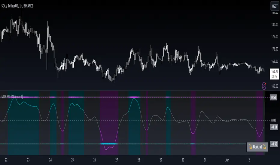 Evaluate Short opportunities when the aggregated MTF RSI falls below the lower neutral threshold, signaling possible bearish momentum.