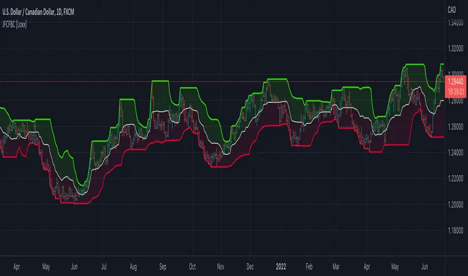 Double Jurik-Filtered Composite Fractal Behavior (CFB) Channels [Loxx] is a channel indicator that acts as both a baseline, similar to Donchian, and as support and resistance levels. This indicator is price time adaptive meaning it flexes to price volatility waves. The indicators adaptive nature is calculated using the Composite Fractal Behavior (CFB) algorithm. The result of this adaptive calculation is then smoothed using Jurik Filtering, and then it's normalized to conform to a range of values. This helps better identify trends.