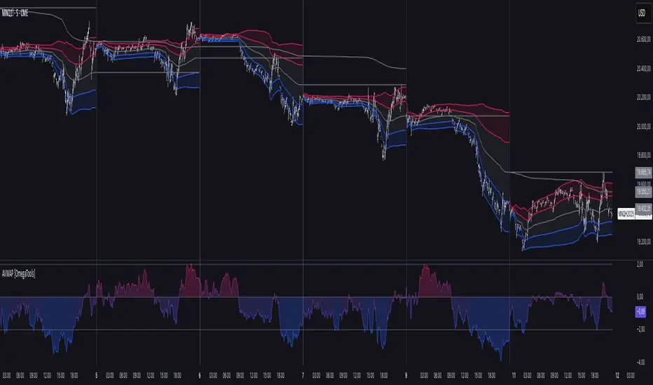 The Multiple AVWAP [OmegaTools] indicator is a sophisticated trading tool designed for professional traders who require precision in volume-weighted price tracking. This indicator allows for the deployment of multiple Anchored Volume Weighted Average Price (AVWAP) calculations simultaneously, offering deep insights into price movements, dynamic support and resistance levels, and trend structures across multiple timeframes.