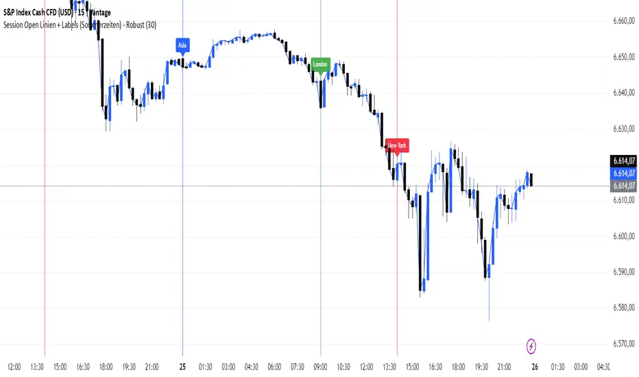 Automatically displays the open times of the major markets: Sydney/Asia, London, and New York, including Daylight Saving Time (DST) adjustments. Lines and labels are drawn directly on the chart to clearly indicate session opens. Perfect for tracking global market activity in real-time.
