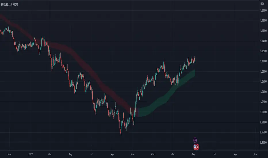 The strongest signal for a big downward move is when the low of the zone (the expected bottom of where price should be given the length of the indicator) turns into a resistance area for price.