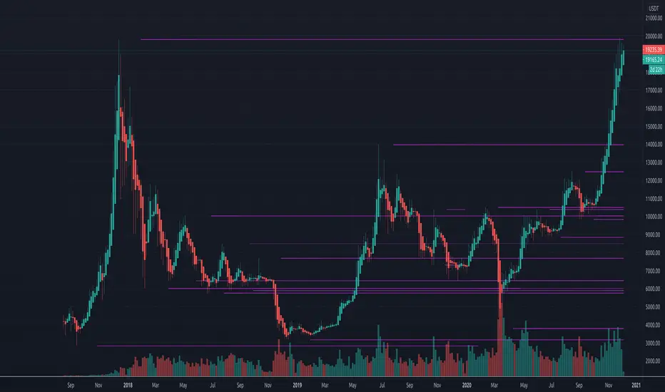 It also shows the levels in the last 100 bars in higher detail. Details detection is only applied to last 100 bars so that your chart is not cluttered with infinite horizontal lines. 100 can be changed in the settings.