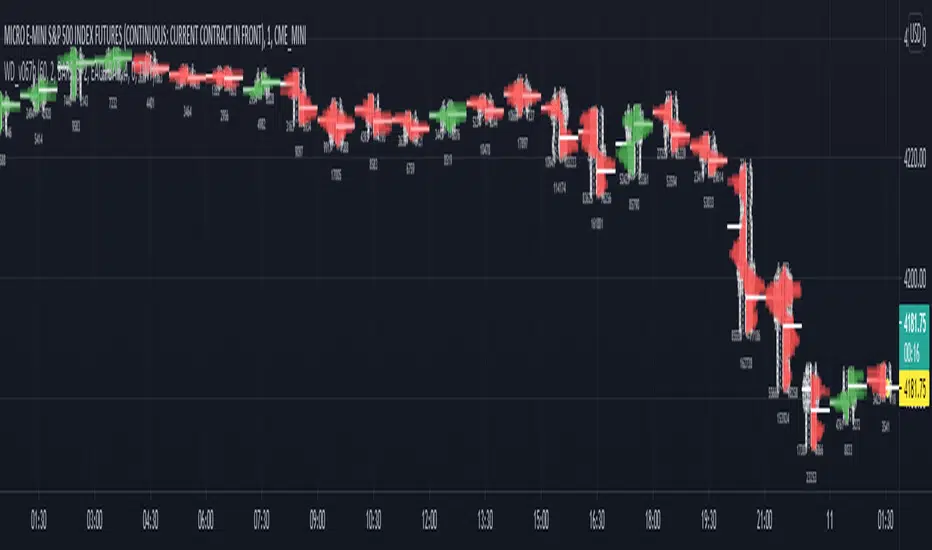 It works on intraday charts only, up to 720m (12H). It can plot balanced or unbalanced waindrops, and volume profiles up to 24H sessions.