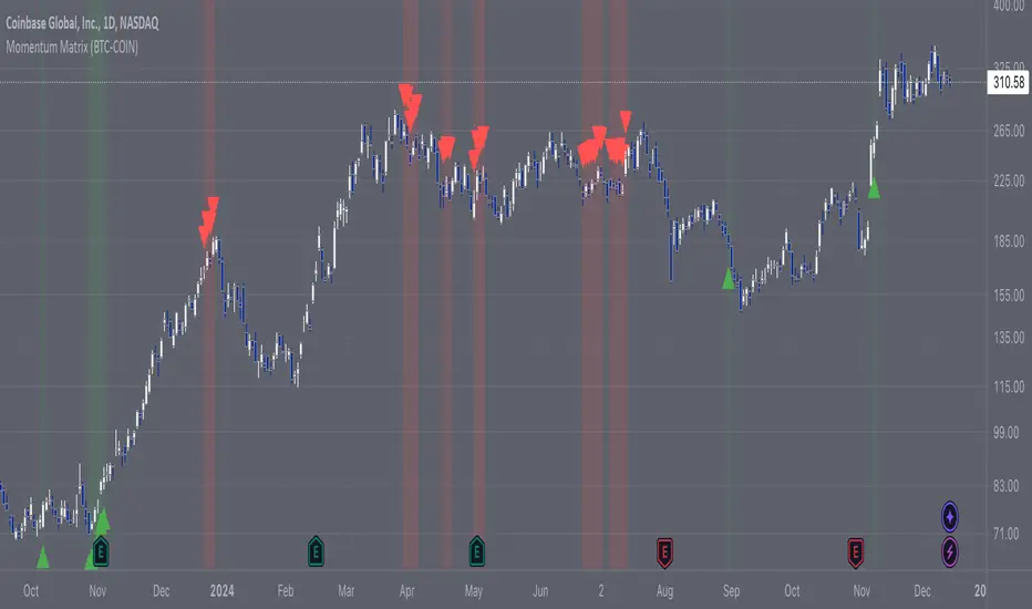 The Momentum Matrix (BTC-COIN) indicator analyzes the momentum relationship between Coinbase stock (
