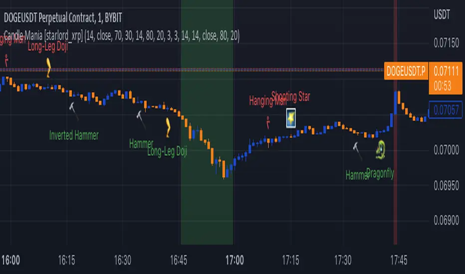 This indicator locates and places markers on known bullish and bearish candles. All candles can be turned on/off in the settings. It also has a setting to display RSI/MFI/Stoch RSI indications of oversold and overbought areas in the background showing areas of higher interest. The last feature is a setting that allows you to see where Heiken-Ashi has switched from green to red and vice-versa. Please let me know if there is anything that you would like to see added or any improvements.