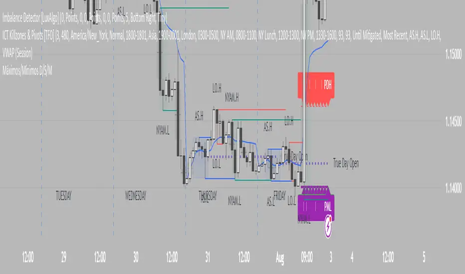 Maximums and minimums of the day, week, and month. Basically, it automatically marks and labels the highs and lows of the previous daily , weekly, and monthly candles. The labels can be added or removed at your discretion, leaving only the dotted lines.