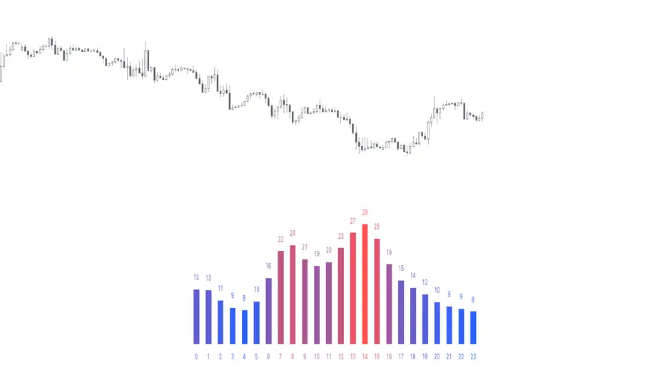 The indicator analyses the volatility and reports statistics by the time of day.